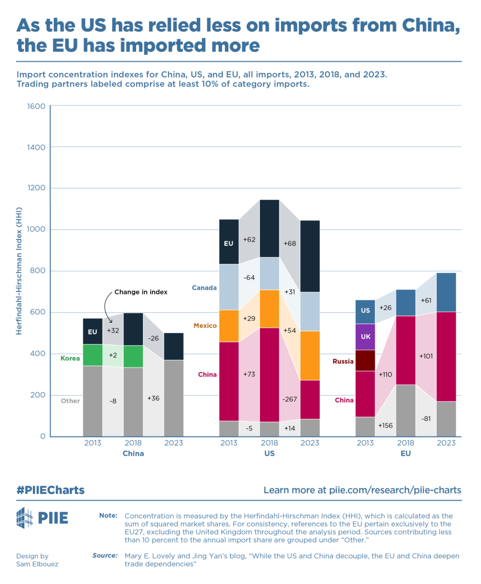 As the US becomes less reliant on imports from China, the EU is importing more.