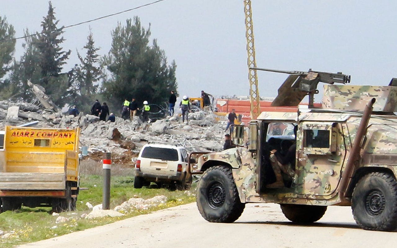On February 26, 2024, Lebanese army vehicles block the road leading to a destroyed warehouse outside the Lebanese Hezbollah stronghold village of Buday. The Israeli military said its air force had struck targets belonging to the Hezbollah militant group “deep in Lebanon.” ” residents reported an explosion near the northeastern city of Baalbek. (AP photo)