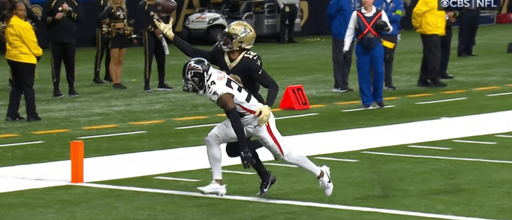New Orleans Saints stud receiver Chris Olave made a truly ridiculous juggling touchdown catch Sunday against the Atlanta Falcons in a game both teams must win to keep their playoff hopes alive. With both teams tied at 17 early in the third quarter, Olave streaked down the sideline as quarterback Derek Carr heaved a pass […]