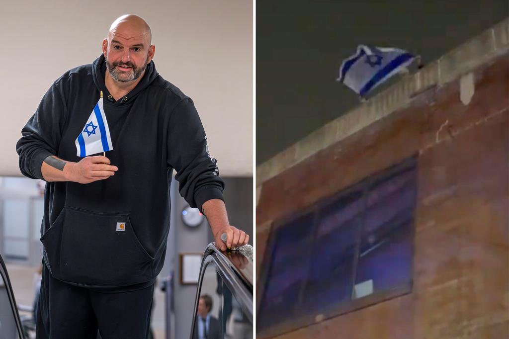 John Fetterman mocks pro-Hamas protesters with Israeli flag