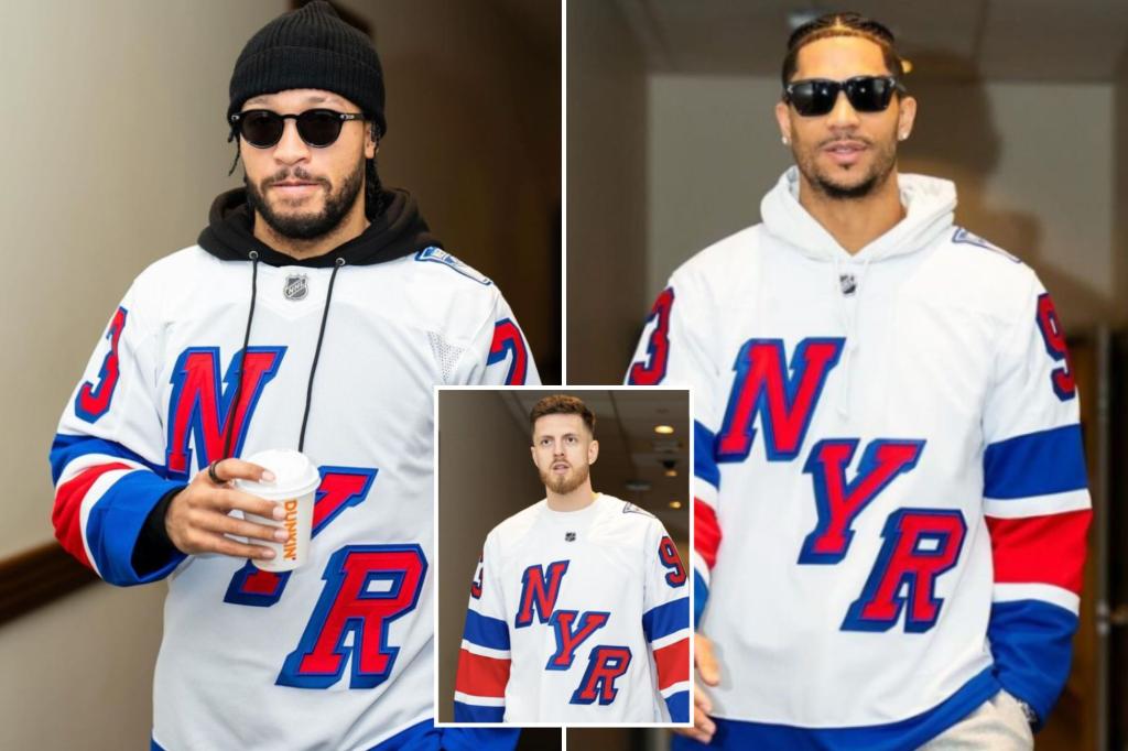 Knicks stars rock out Rangers jerseys before tilt vs. Lakers