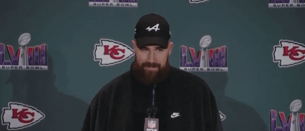 The Travis Kelce/Taylor Swift questions have reached new heights of cringe. While Kelce appeared in front of reporters for the Kansas City Chiefs’ pre-Super Bowl press junket, one reporter tried to get him to sing along to a Taylor Swift song. “I was wondering if you could help me complete this lyric here. ‘Karma is […]