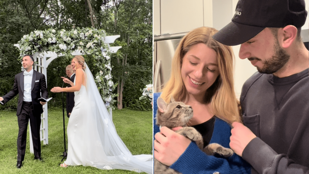 Couple adopts chatty kitty that crashed their wedding