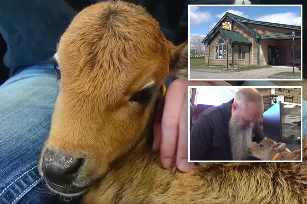Cow-calf rejected by mom becomes Maine gun store employee