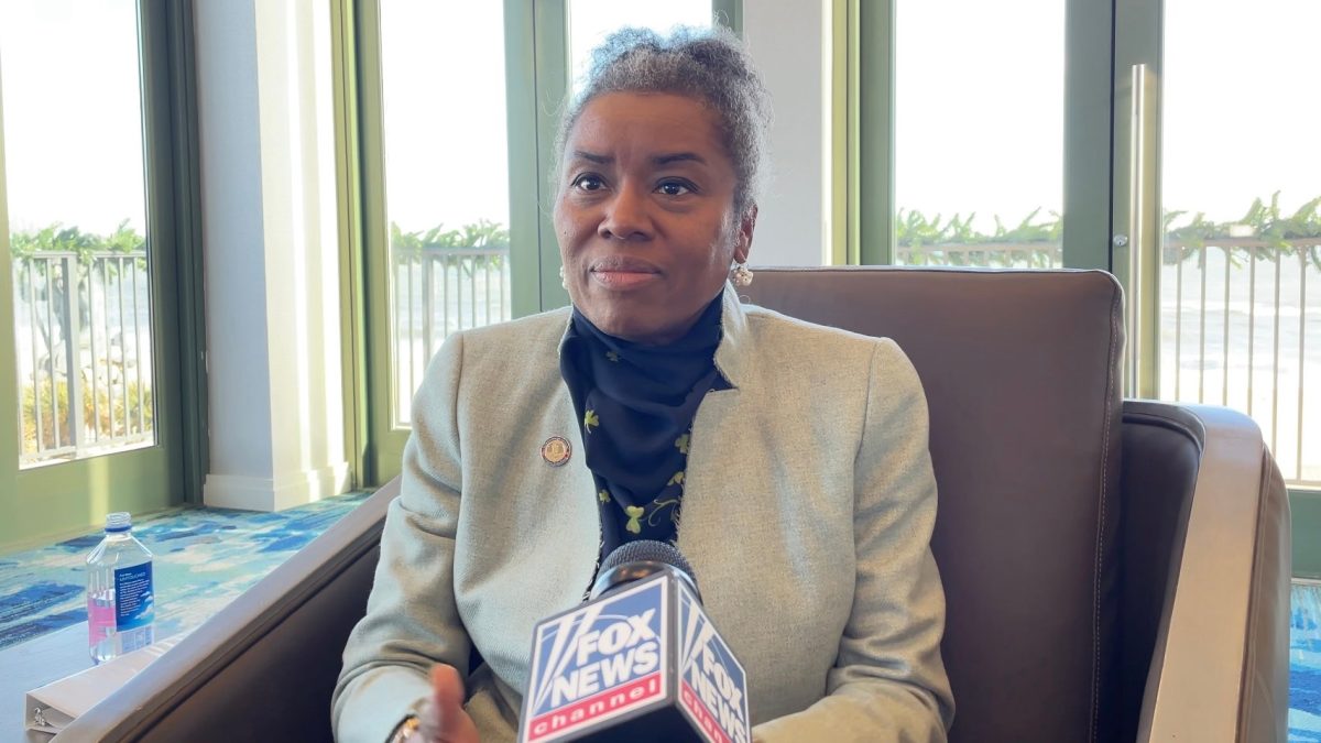 Virginia Lieutenant Governor Winsome Sears speaks at a rally at Chick's Oyster Bar in Virginia Beach, Virginia, on September 5, urging him to seek the party's nomination for Virginia's 2025 gubernatorial race. expressed. (Kristen Zeiss/The Washington Post via Getty Images)
