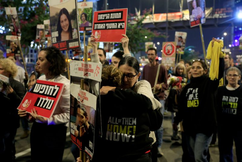 People react to the reports of a possible Gaza cease fire and hostage release deal being reached during a rally calling for the return of hostages held in the Gaza Strip on January 15, 2025 in Tel Aviv, Israel. A ceasefire deal between Israel and Hamas was announced tonight that would entail the release of […]
