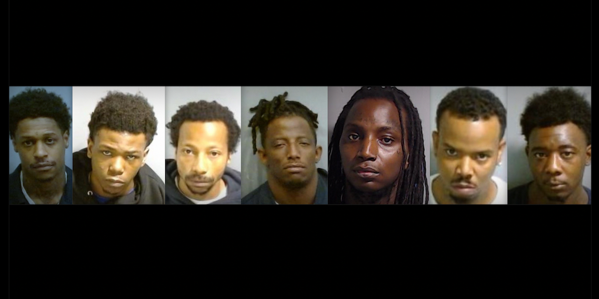 The suspects were identified as Ali Caldwell, Decaton Mobley, Marx Crawford, Tradon Crawford, Quiyontay Sanders, Reginald Thomas and Richard Hollis, the station added Markus Crawford and Tradon Crawford are brothers.