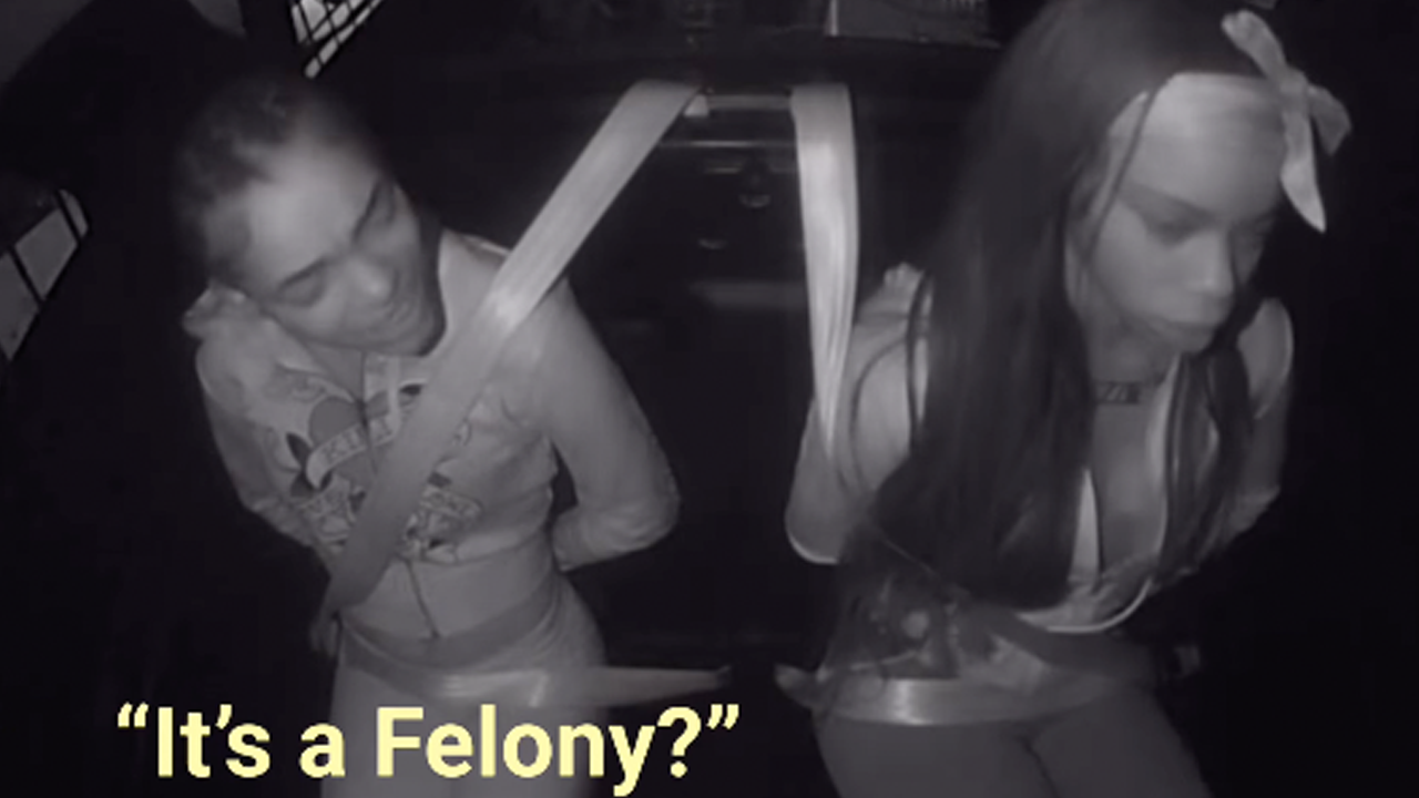 “Is that a felony?” one of the women asked the other in the back seat of the police car.