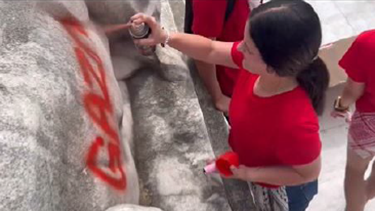 A 20-year-old Maryland woman who was caught on video spray-painting “Gaza” on the Columbus Fountain outside Washington, D.C.'s Union Station this summer was arrested Friday and is now facing federal charges, according to prosecutors.