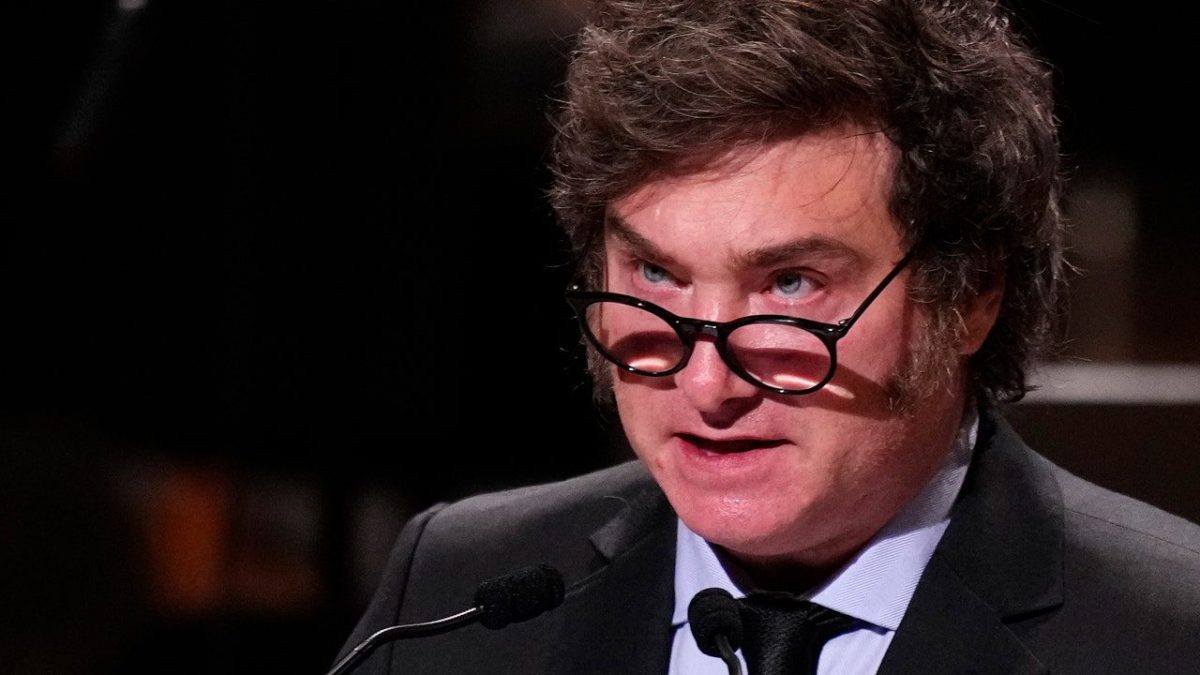 Argentina’s President Javier Millei speaks during a ceremony commemorating Holocaust and Heroes Day in Buenos Aires, Argentina, Wednesday, May 8, 2024. (AP Photo/Natasha Pisarenko)