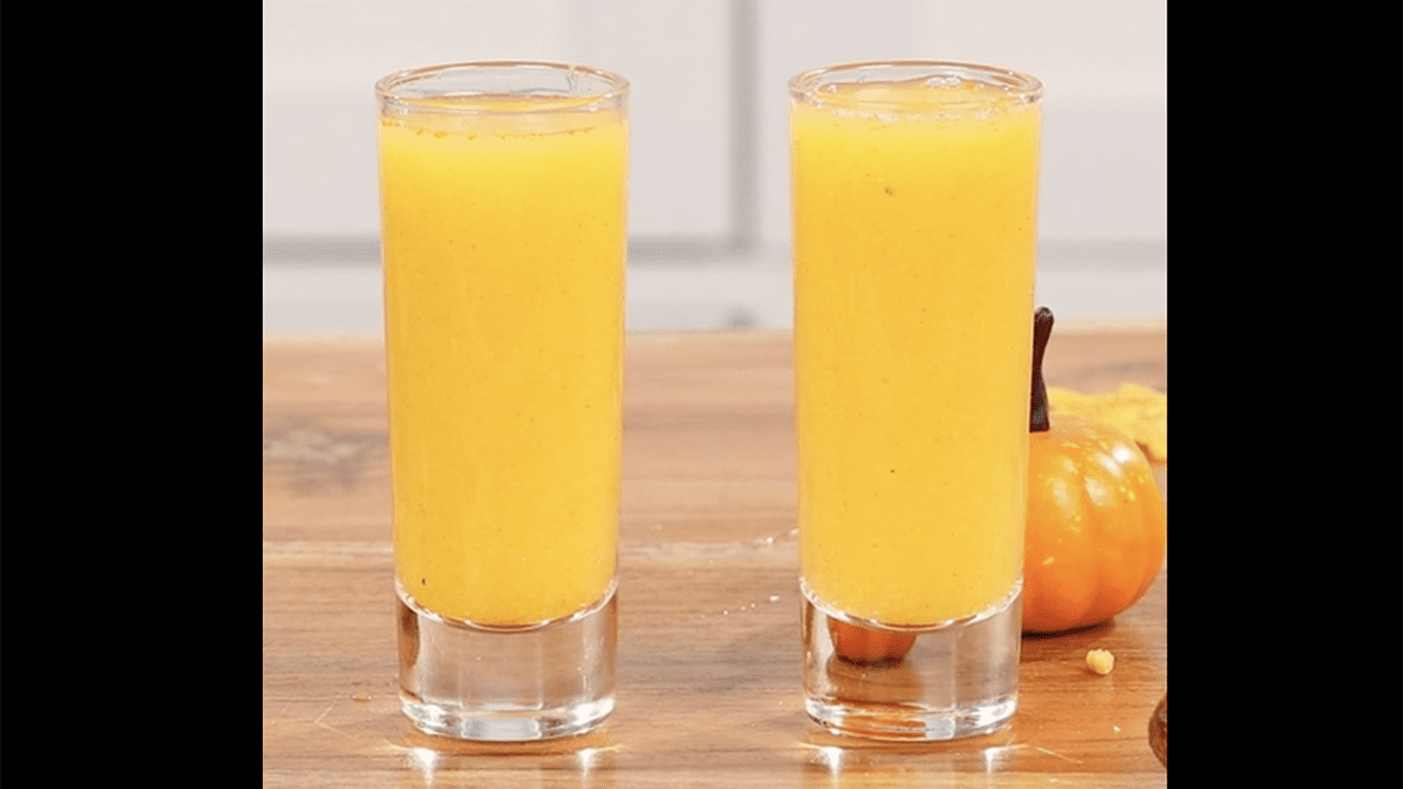 Her shot combines orange juice, lemon juice, ginger, turmeric, and pepper, and Sass recommended buying frozen ginger and turmeric at the grocery store for an even simpler recipe.