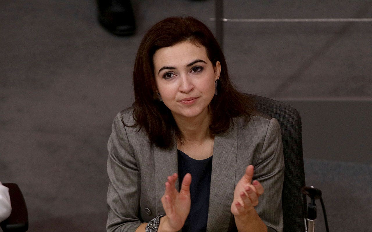 Austrian Minister of Justice Alma Zadic attends the first parliamentary session in Vienna, Austria, January 10, 2020. Zadic on Thursday unveiled plans to tighten domestic regulations on spying. Espionage is currently explicitly prohibited when directed within Austria, but not when targeting other countries or international organizations. (AP Photo/Ronald Zack, File)