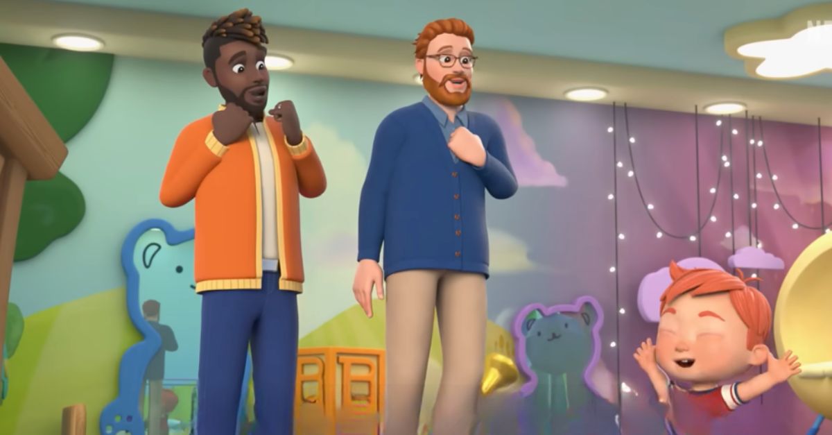 Cocomelon Laneis rated TV-Y and follows the lives of young children and their families as they learn about the world around them. In the episode called “Just Be Me” (Episode 8), a little boy tries on different costumes. “There are so many outfits to choose from!” — before donning a tiara and tutu, with encouragement from her two dads. One of the fathers sings, “When you can't decide, think about all the things you want to do. Just be who you are.”