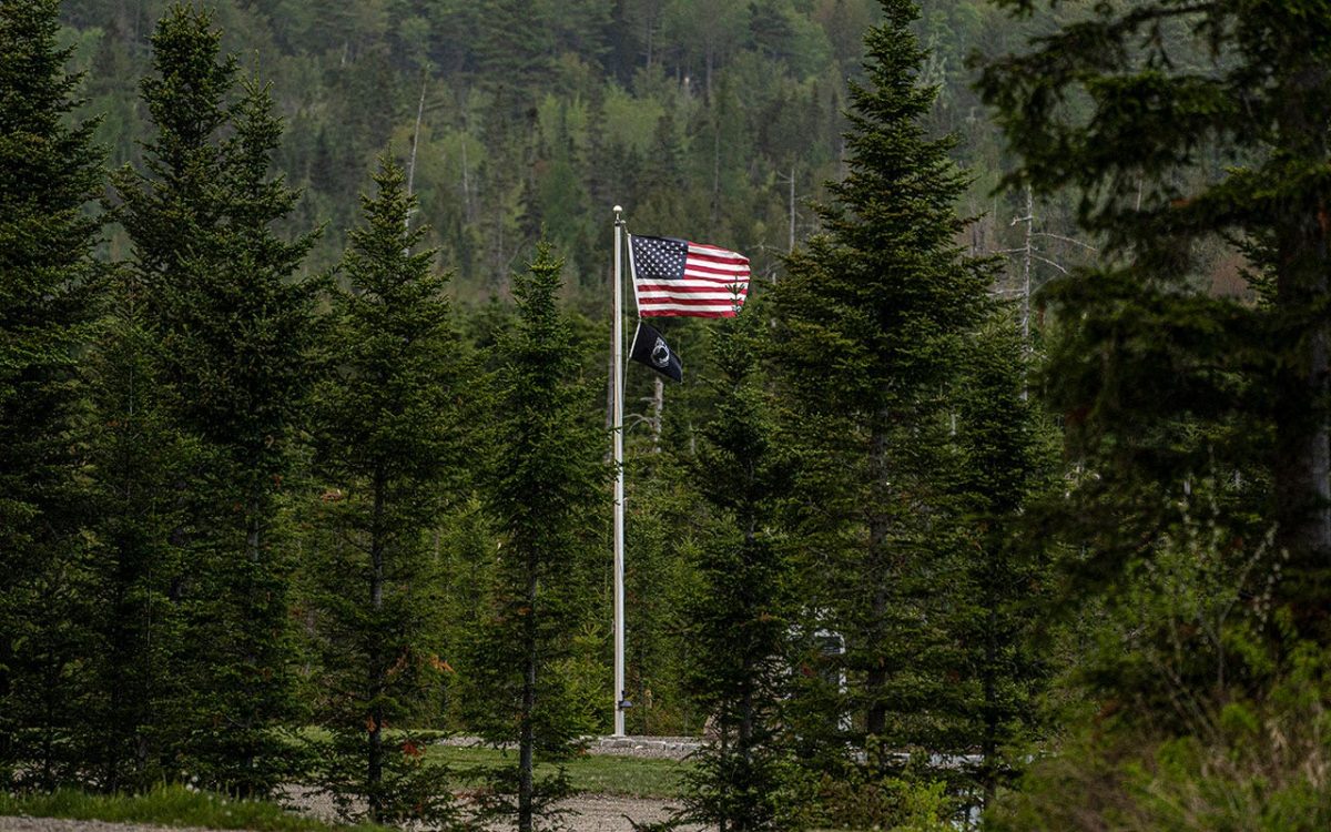 The American flag flies over Patriot Park, a memorial to veterans in Columbia Falls, Maine, on May 27, 2023. A Maine family plans to build the world’s tallest flagpole as the centerpiece of a $1 billion memorial project. Veterans have abandoned that idea. (AP Photo/Robert F. Bucati, File)