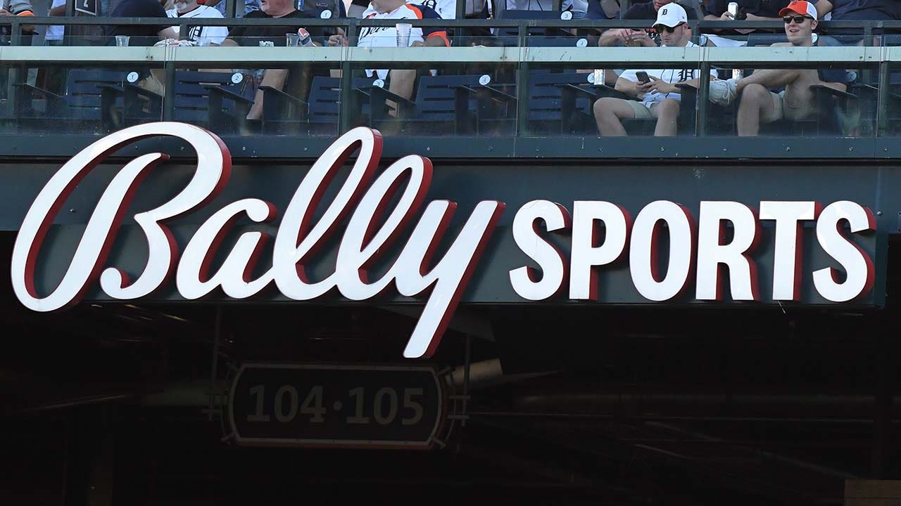 The Bally Sports sign in the Comerica Park outfield during the Detroit Tigers vs. Boston Red Sox game at Comerica Park on August 31, 2024 in Detroit, Michigan. (Mark Cunningham/MLB Photo via Getty Images)