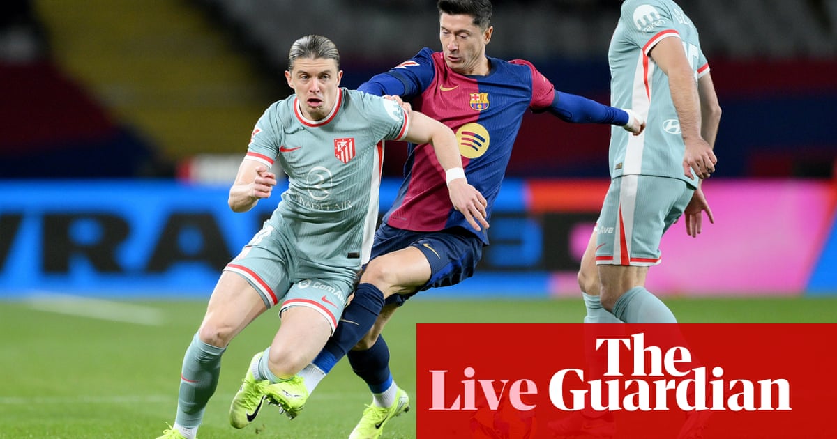 Hello and welcome to live coverage of the weekend’s biggest fixture: Barcelona v Atletico Madrid at the Estadio Olimpic Lluis. It’s 1st v 2nd in La Liga, with Real Madrid breathing on the shoulders of both with increasing intensity. Not that anything can match the intensity of Atleti’s form: they’ve won 11 in a row in all competitions, including an incredible comeback from 3-1 down against Sevilla a fortnight ago.