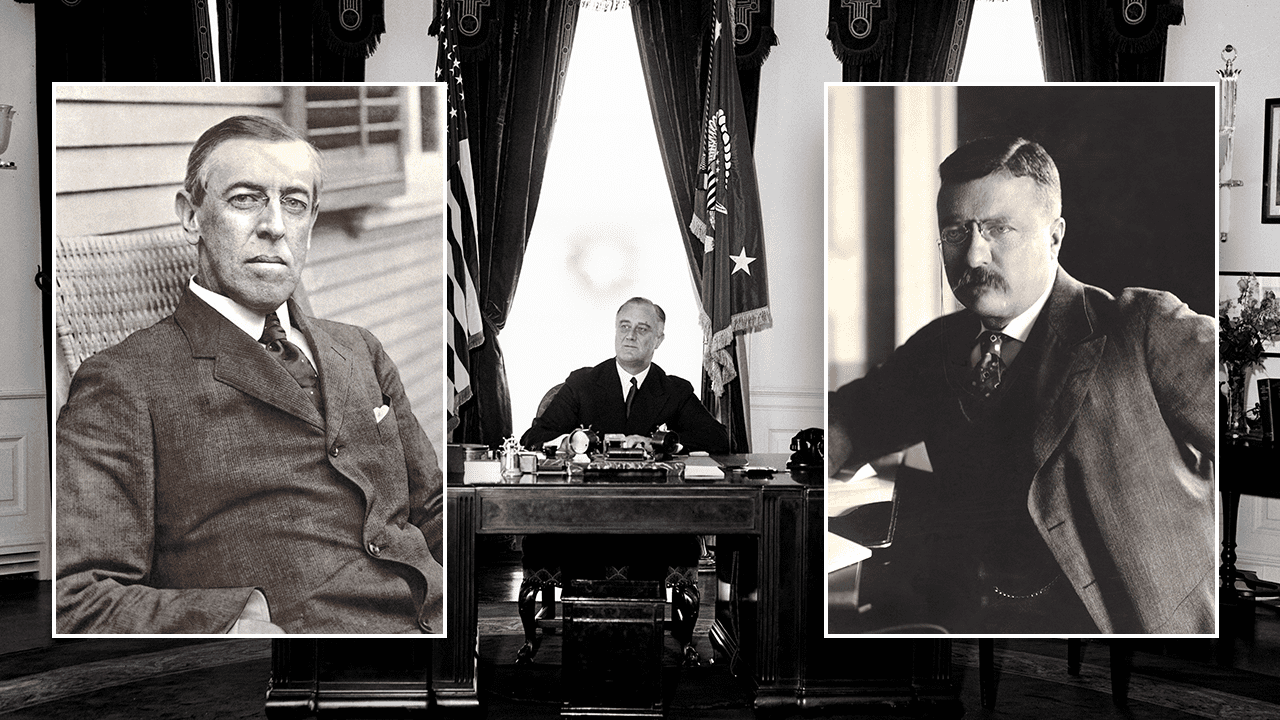 American presidents Woodrow Wilson (far left), Franklin D. Roosevelt (center), and Theodore Roosevelt (right) all experienced health problems while in office. (Getty Images)