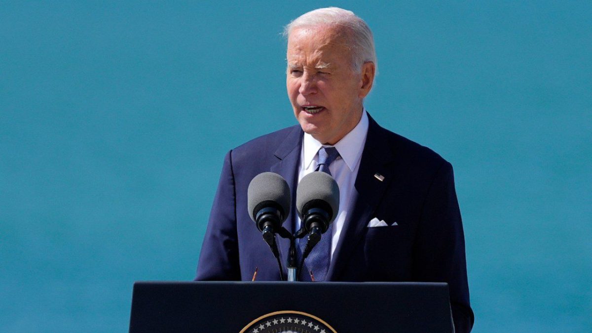 Biden did not mention former President Trump by name in his speech, which lasted less than 15 minutes, but his comments were a clear allusion to issues he has focused on in his reelection campaign, including protecting democracy from threats posed by Trump and preserving America’s role as an influential nation that can rally allies on the world stage.