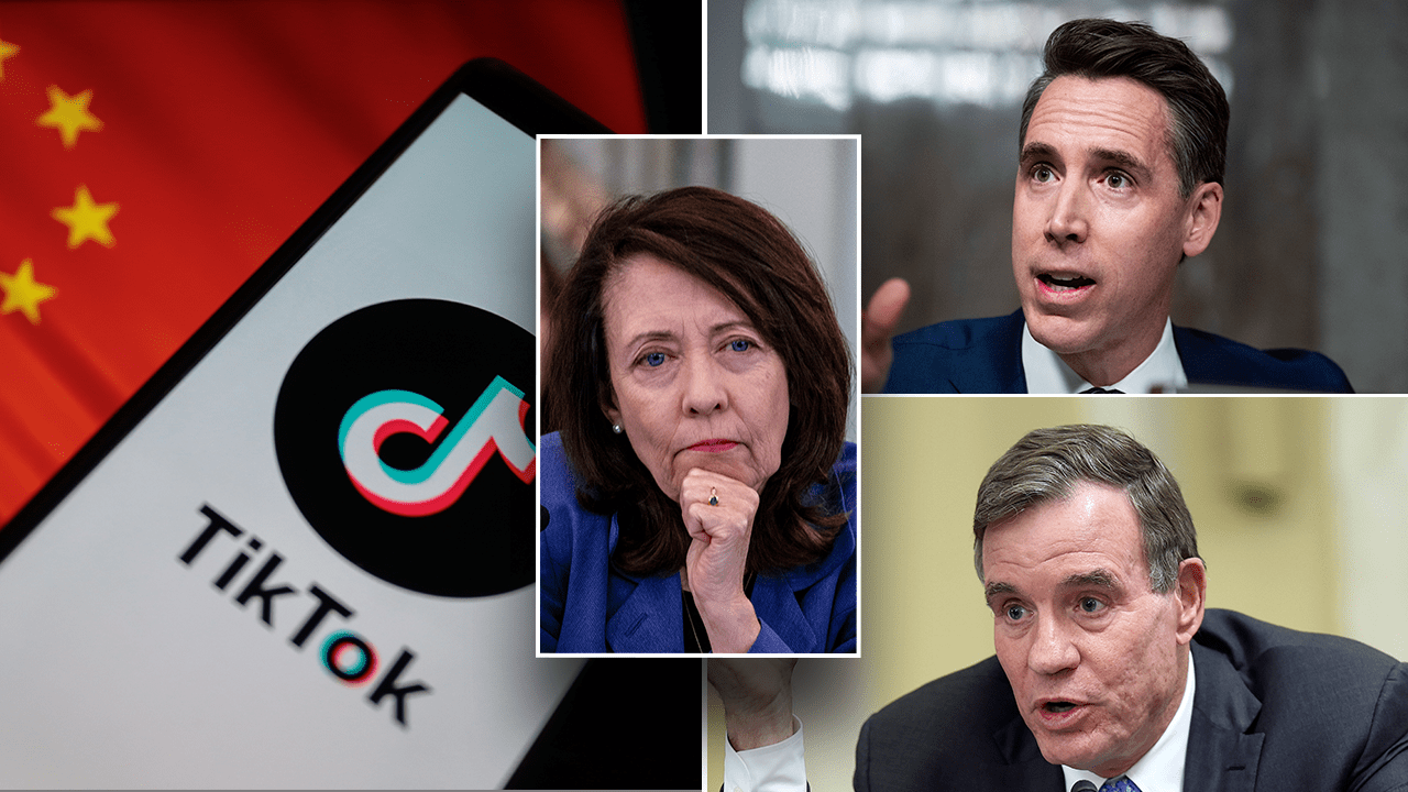 A bipartisan group of senators, including Sen. Josh Hawley and Rep. Mark Warner, pushed back on claims about the House-passed TikTok bill sponsored by Sen. Maria Cantwell (center). (Getty Images)