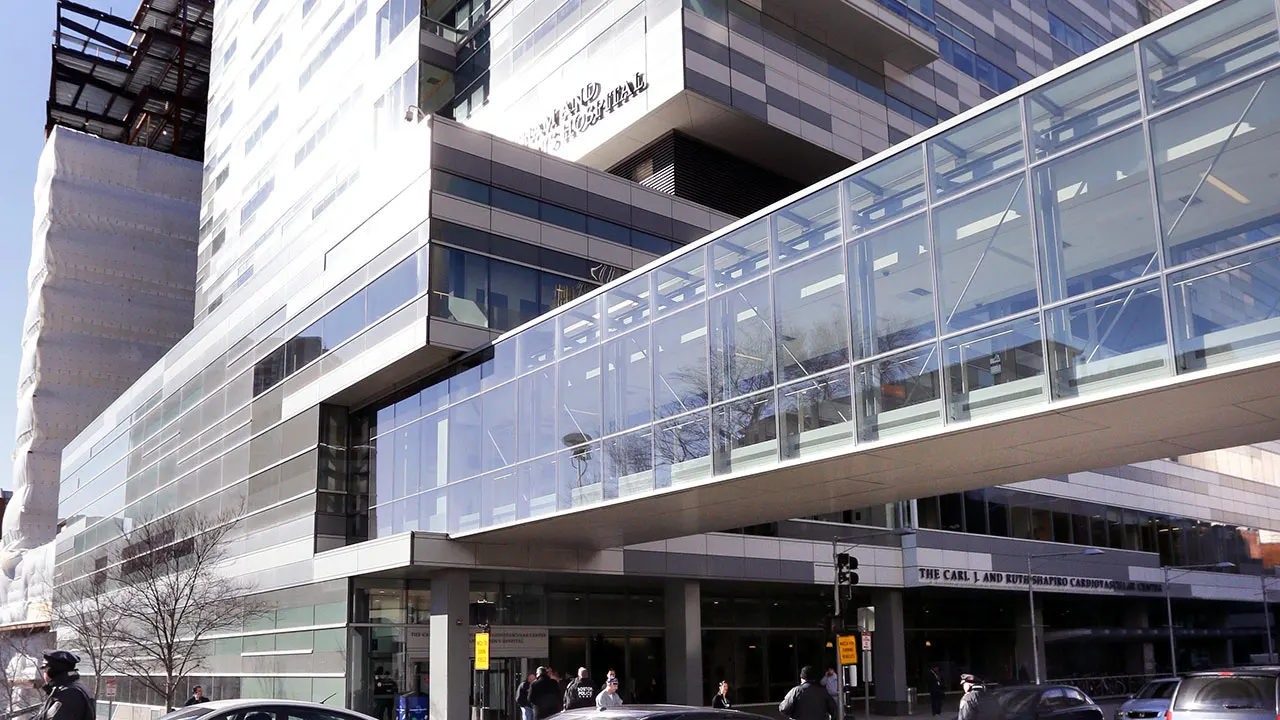 A pedestrian walks past the Shapiro Building at Brigham and Women's Hospital in Boston on January 20, 2015. A burst water main caused flooding at Boston's Brigham and Women's Hospital, disrupting services to about 200 patients seeking birth through in vitro fertilization. (AP Photo/Steven Senne, File)