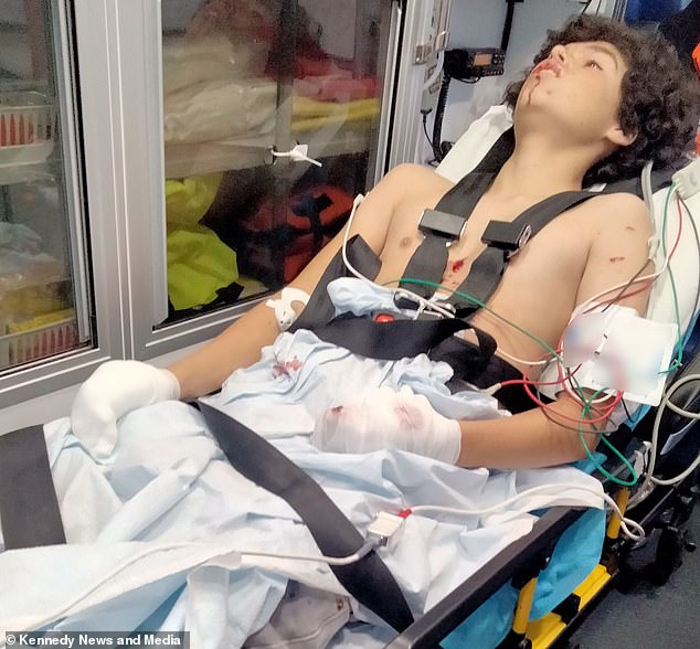 Mr Adams said he was shocked to find his son on his doorstep with his hand ‘just turned inside out… Digits were hanging. A lot of tissue exposure, you could see bone, fingers, hand, ligaments.’
