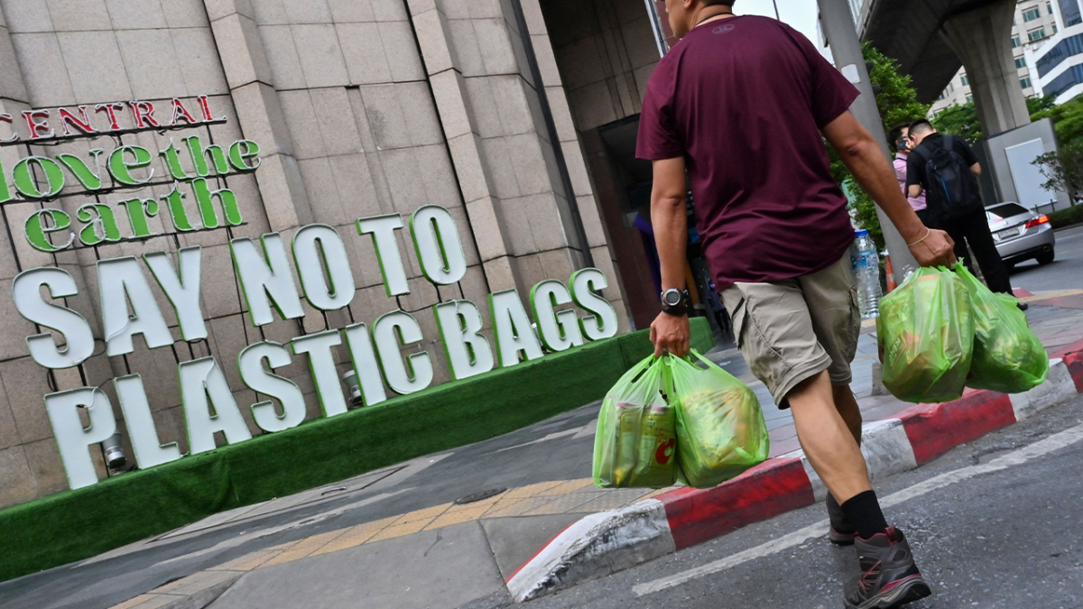 California's new plastic bag ban only applies to plastic bags at grocery stores. (Photo by ROMEO GACAD/AFP via Getty Images) (Getty Images)