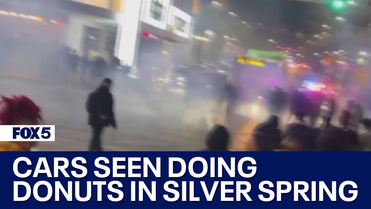Multiple cars were seen doing donuts in the middle of a busy intersection in downtown Silver Spring on Saturday night, video from …