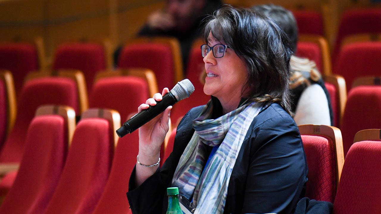 USA Today columnist Christine Brennan asks a question during the USA team's press conference at the main press center during the 2018 PyeongChang Winter Olympics. (Shana Lockwood/USA Today Sports)