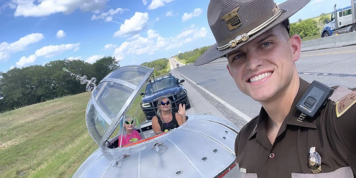 “It’s not every day we pull over a UFO,” the Oklahoma Highway Patrol said. I have written On Tuesday, they posted on their Facebook page: “Officer Ryan VanVreck #722 stopped this vehicle yesterday on Turner Turnpike for obstructing plates. The vehicle was on its way to the UFO Festival in Roswell, New Mexico. Officer VanVreck let them go with only a warning.”