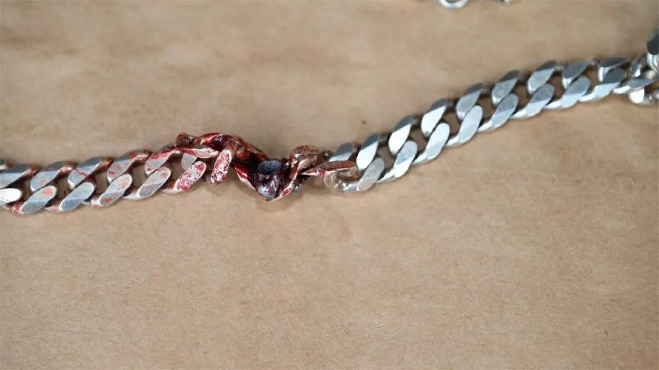 A .22 caliber bullet was reportedly fired during the altercation and would have struck the victim in the neck had it not been blocked by the necklace. The victim suffered stab wounds.