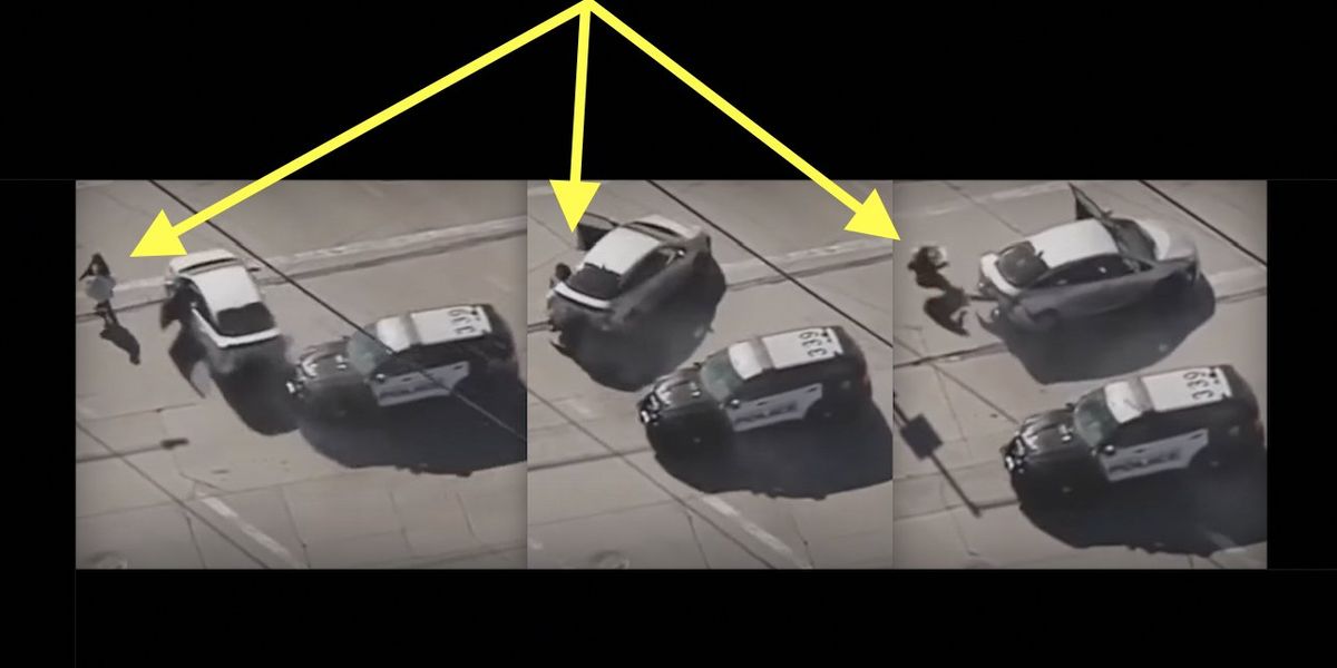 Cops ram carjacked vehicle, which spins and slams into 66-year-old woman crossing street, sending her flying into curb