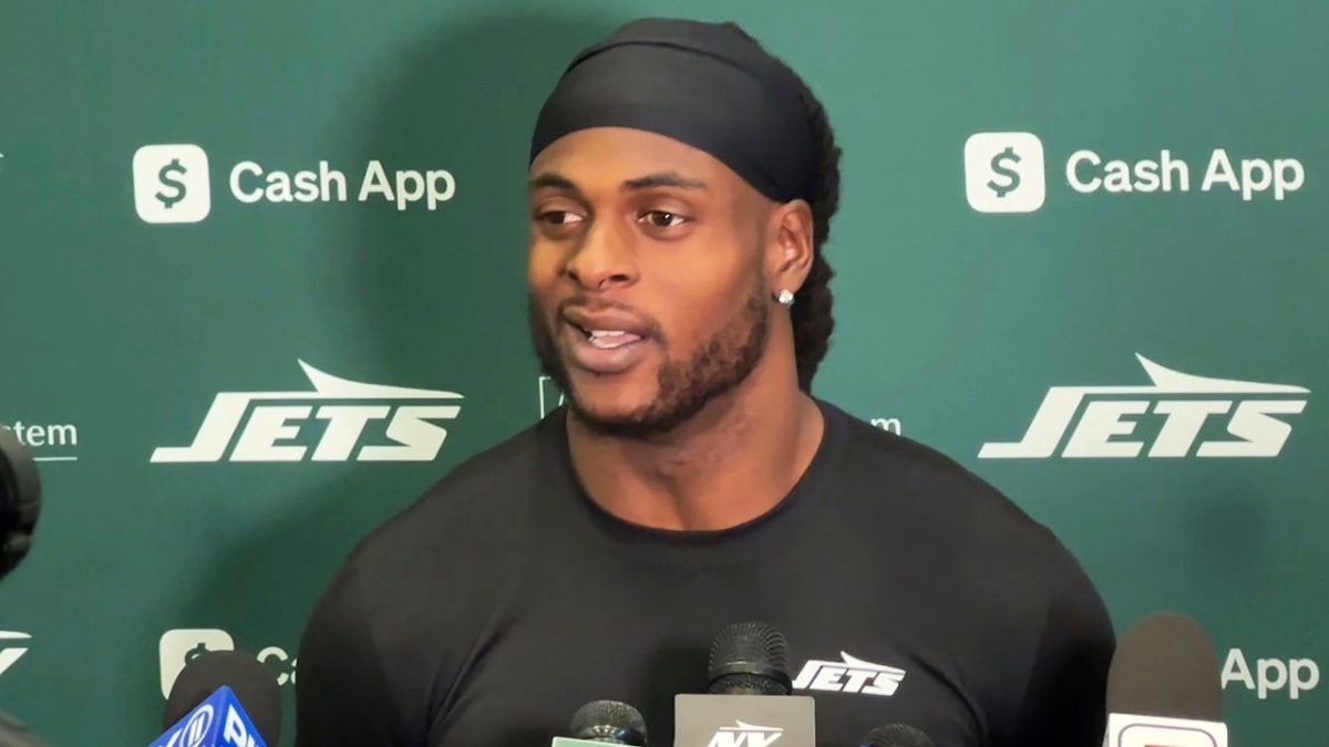New York Jets Wide Receiver Davante Adams will speak to reporters on Wednesday, October 16, 2024 at the team's facility in Flowham Park, New Jersey. (Photo by Dennis Waszak Jr./AP)