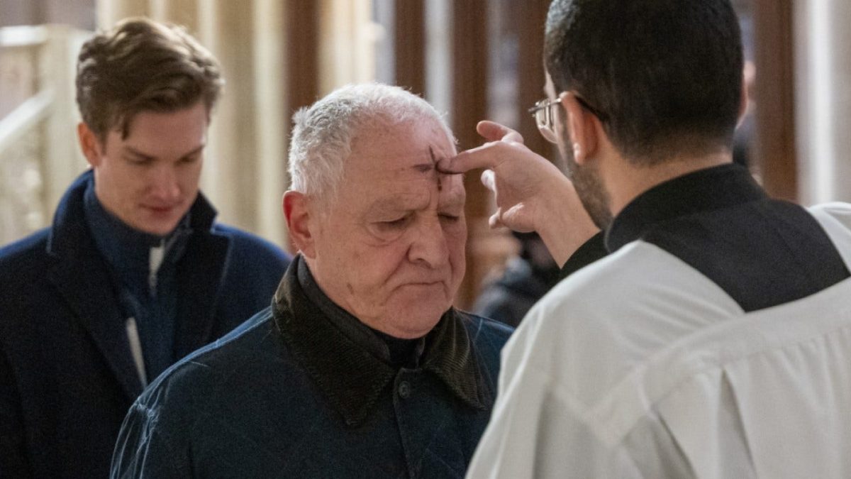 People get the sign of the cross placed on their forehead by the priest at St. Patrick's Cathedral on Ash Wednesday. (Photo: Spencer Platt/Getty Images)