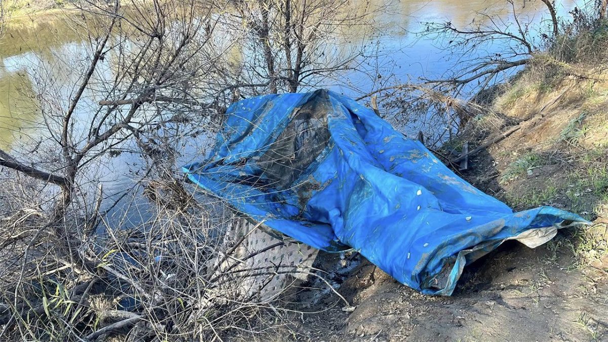 Tarps and trash from homeless people camped along the Tuolumne River on January 23, 2024 in Modesto, California. (Modesto Police Department)
