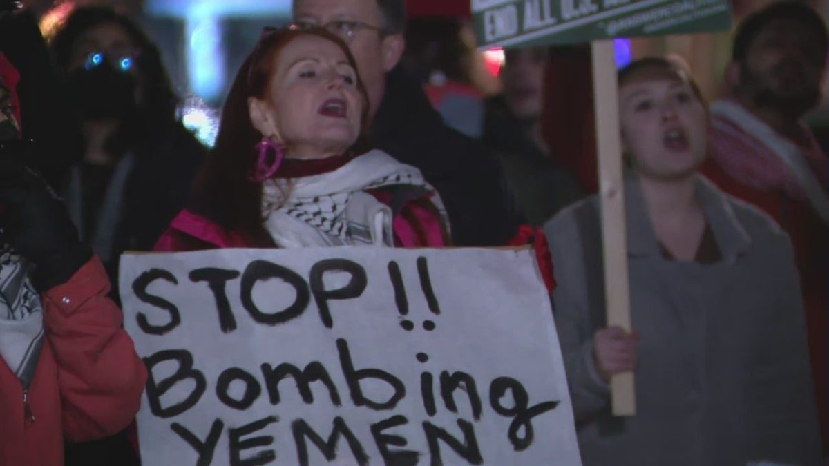 Activists held anti-war placards and waved Iranian flags, chanting “Let Yemen live” and “Keep Yemen out of the way”. FOX 5 DC reports.