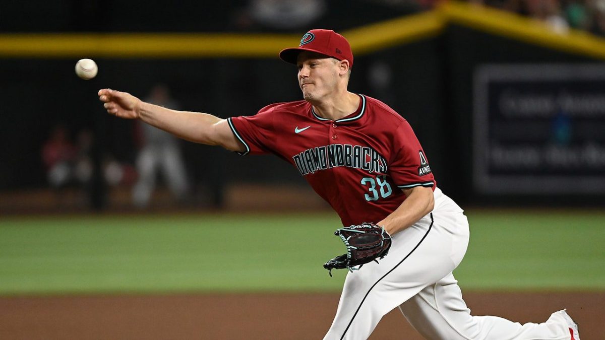 Paul Sewald of the Arizona Diamondbacks plays against the Rangers during the World Series at Globe Life Field on Oct. 27, 2023 in Arlington, Texas. (Carmen Mandato/Getty Images)