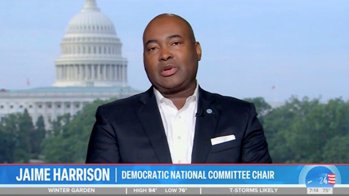 Democratic National Committee Chairman Jaime Harrison was pressed on Tuesday about whether President Biden was “bullied” into dropping out of the race. (Screenshot/NBC/Today)