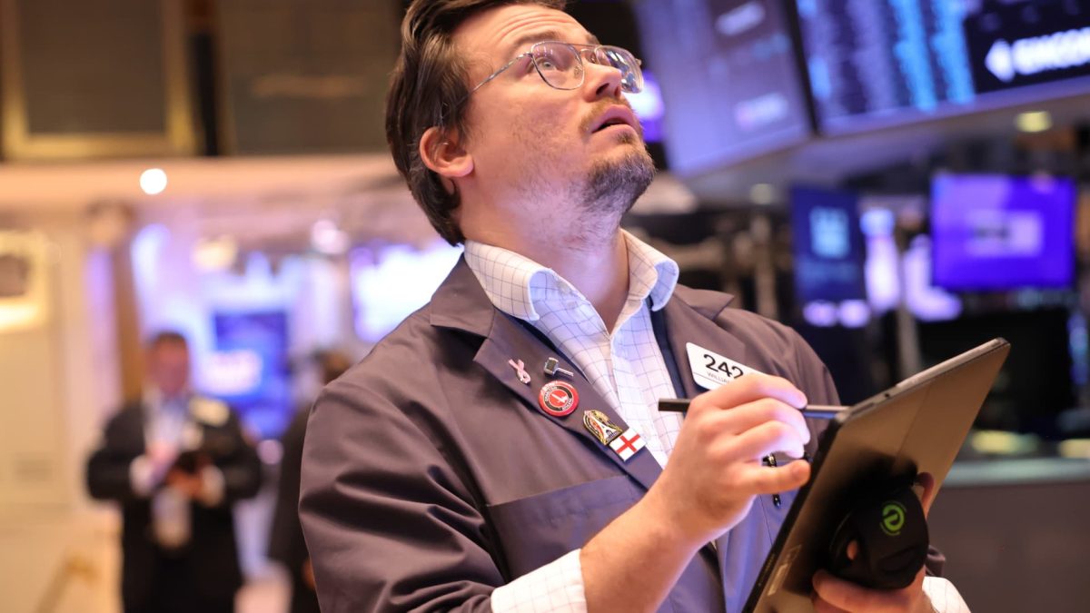 Traders work on the floor of the New York Stock Exchange during morning trading on November 26, 2024.