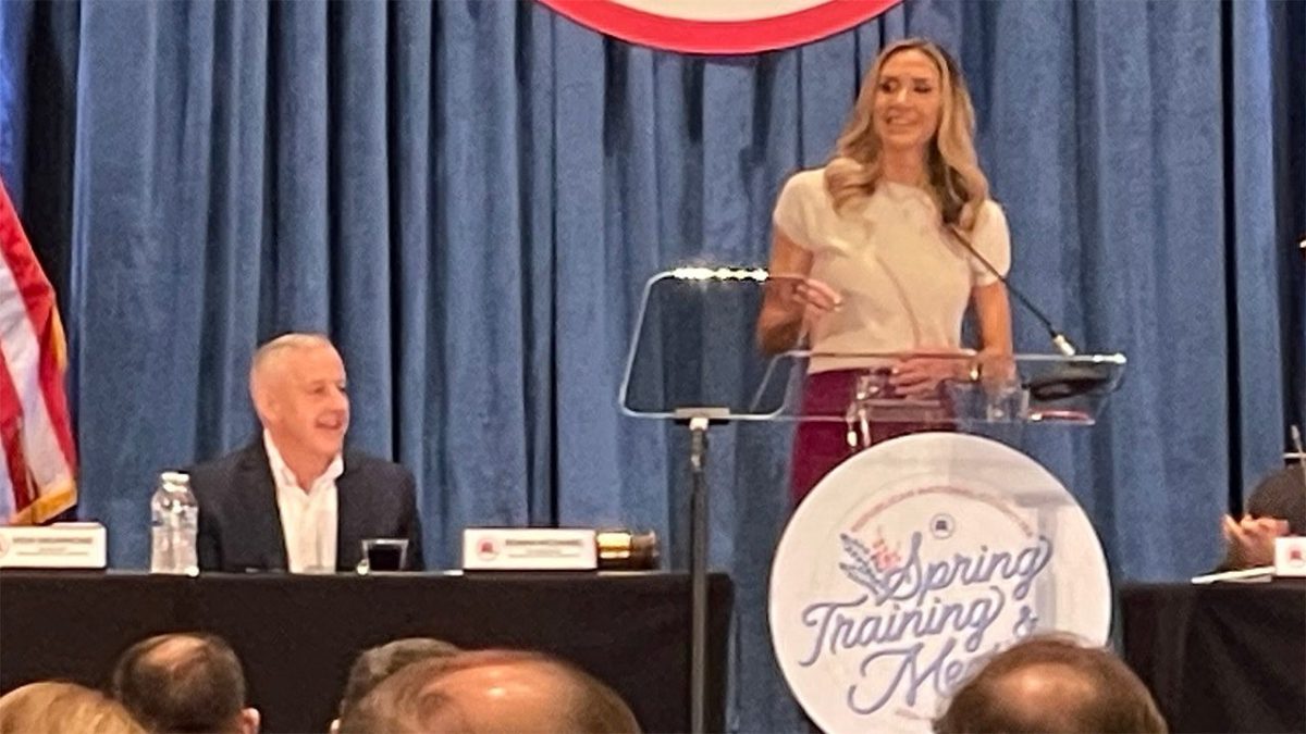 Newly elected RNC Chair Michael Whatley and co-chair Lara Trump take the stage during the RNC Spring Meeting in Houston, Texas on March 8, 2024. (Paul Steinhauser/Fox News)