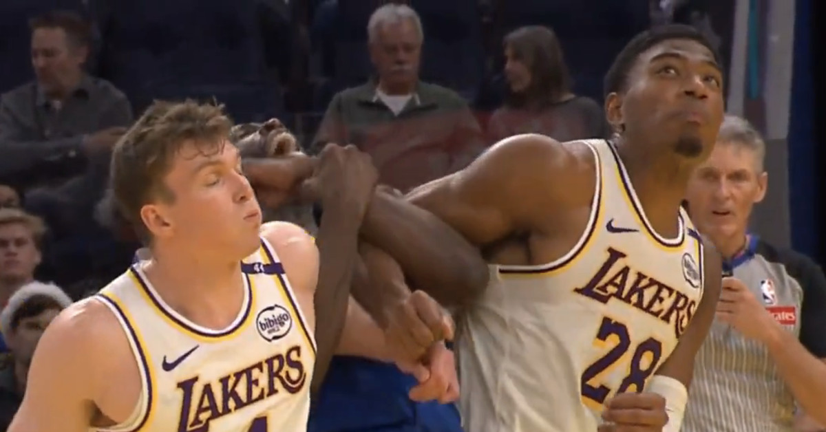 Early in the fourth quarter, with Jonathan Kuminga at the foul line, Green was called for a loose ball foul when he simultaneously brought down Lakers Dalton Knecht and Rui Hachimura. This looked exactly like something out of WWE. Green grabbed their arms and fell to the floor, pulling them with him in the process. Although it was a clear violation to anyone who could see it, Green complained to officials even after the whistle blew.