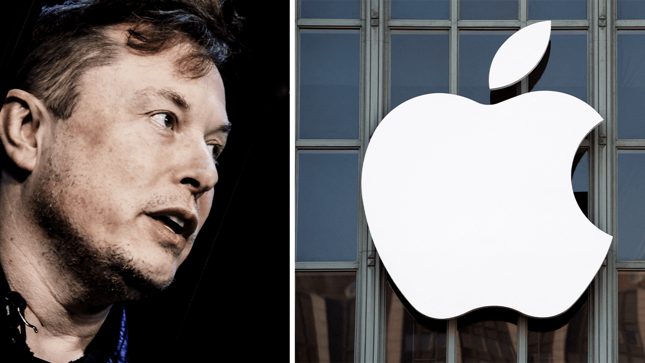 Elon Musk next to the Apple logo. (Getty Images/Getty Images)