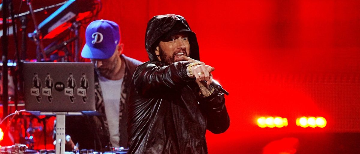 LOS ANGELES, CALIFORNIA – NOVEMBER 05: Inductee Eminem performs onstage during the 37th Annual Rock & Roll Hall of Fame Induction Ceremony at Microsoft Theater on November 05, 2022 in Los Angeles, California. (Photo by Theo Wargo/Getty Images for The Rock and Roll Hall of Fame)
