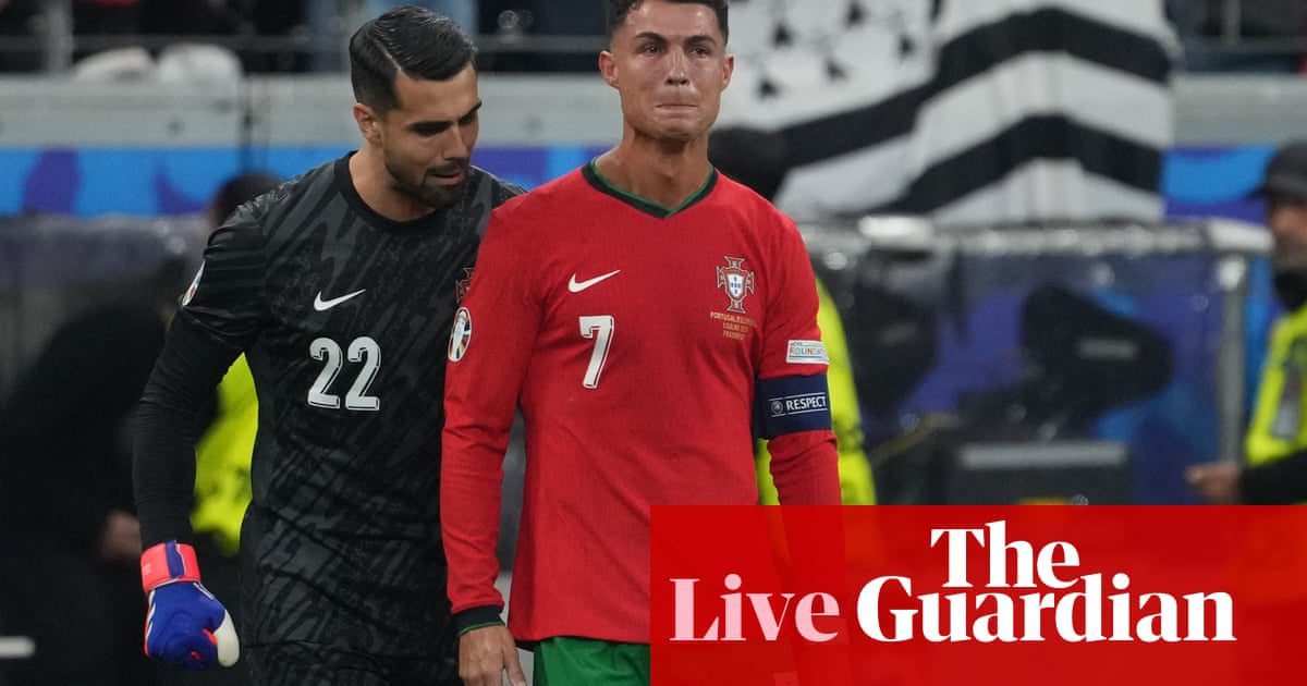 “,”elementId”:”68147f93-535f-4667-8f81-32ead28f590d”},{“_type”:”model.dotcomrendering.pageElements.RichLinkBlockElement”,”prefix”:”Related: “,”text”:”The Ronaldo show is unstoppable and reduces others to bit-part players | Jonathan Wilson”,”elementId”:”040efb45-2c31-4420-b911-023868cbe71a”,”role”:”thumbnail”,”url”:”https://www.theguardian.com/football/article/2024/jul/02/the-ronaldo-show-is-unstoppable-and-reduces-others-to-bit-part-players”}],”attributes”:{“pinned”:false,”keyEvent”:true,”summary”:false},”blockCreatedOn”:1719907240000,”blockCreatedOnDisplay”:”04.00 EDT”,”blockLastUpdated”:1719906531000,”blockLastUpdatedDisplay”:”03.48 EDT”,”blockFirstPublished”:1719907240000,”blockFirstPublishedDisplay”:”04.00 EDT”,”blockFirstPublishedDisplayNoTimezone”:”04.00″,”title”:”Preface”,”Contributors”:[],”primaryDateLine”:”Tuesday, July 2, 2024 04:34 EDT”,”secondaryDateLine”:”First published on Tuesday, July 2, 2024 04:00 EDT”}],”filterKeyEvents”:false,”id”:”key-events-carousel-mobile”,”absoluteServerTimes”:false}” config=”{“renderingTarget”:”Web”,”darkModeAvailable”:false,”updateLogoAdPartnerSwitch”:true,”assetOrigin”:”https://assets.guim.co.uk/”}”>