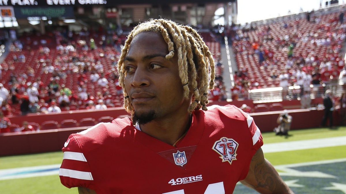 Buster Skrine of the San Francisco 49ers warms up before a game against the Seattle Seahawks at Levi’s Stadium on October 3, 2021 in Santa Clara, California. (Michael Zagaris/San Francisco 49ers/Getty Images)