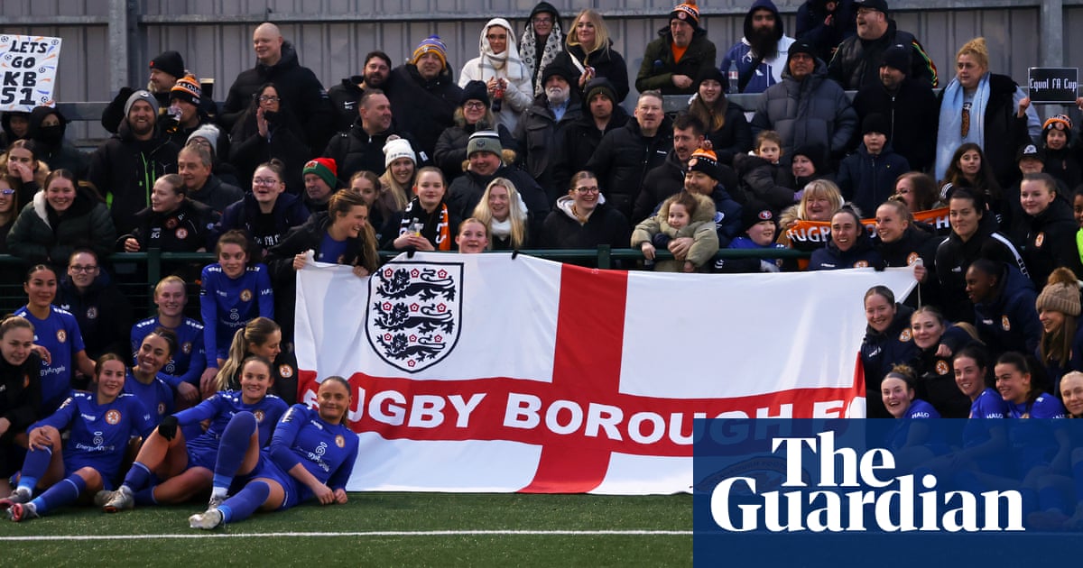 London Bees v Rugby Borough - The Adobe Women's FA Cup Fourth Round<br />BARNET, ENGLAND – JANUARY 12: Rugby players celebrate their team's victory in the Adobe Women's FA Cup fourth round match between London Bees and Rugby Borough on January 12, 2025 at The Hive in Barnet, England. Boro players. (Photo credit: Paul Harding – The FA/The FA via Getty Images) src=”https://i.guim.co.uk/img/media/fbcb49c029cac6705c1955dbcc5d9a51197639e1/282_848_4264_2559/master/4264.jpg?width=445&dpr=1&s=none&crop=none” width=”445″ height=”267.062617260788″ loading=”lazy” class=”dcr-evn1e9″/></picture></div><figcaption data-spacefinder-role= Photo: Paul Harding/FA/Getty Images