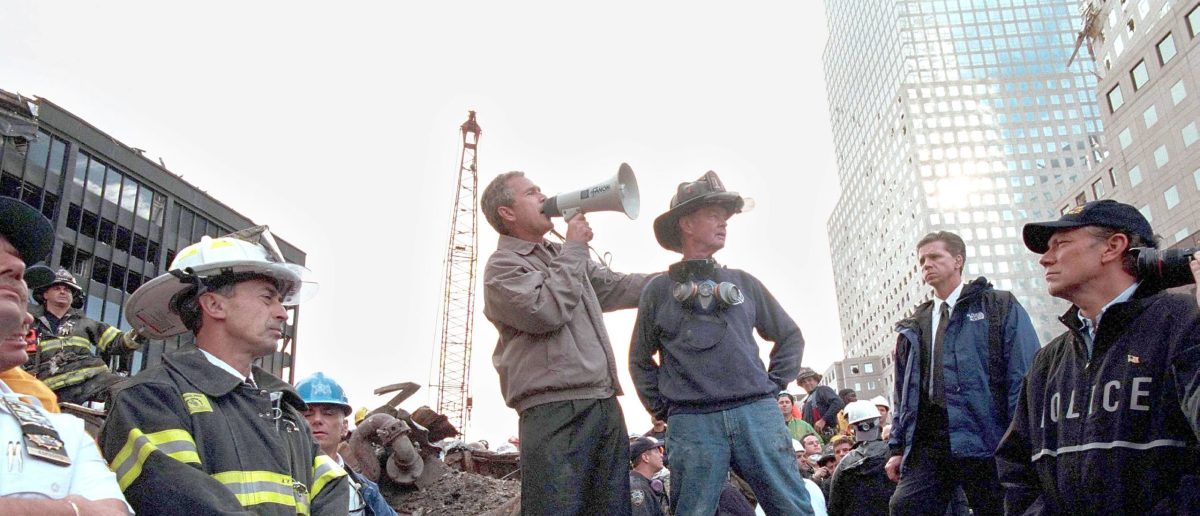 President Bush was wearing same clothes from uploaded photo When he gave his famous “bullhorn speech” to rescue workers at Ground Zero. What is “loudspeaker address”? dated September 14, 2001. (Related: Joe Biden falsely claims he was at Ground Zero the day after 9/11).