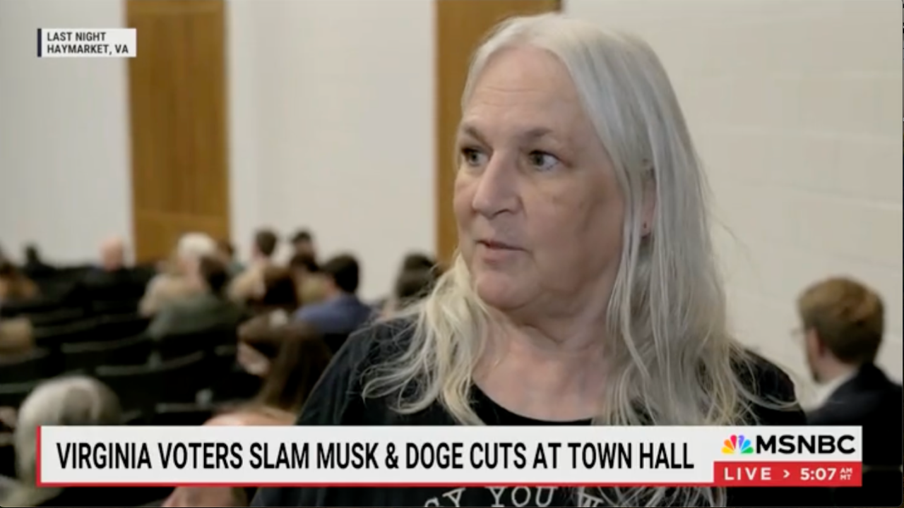 Federal worker Kathy told MSNBC in an interview last week at the town hall in Haymarket, Virginia.