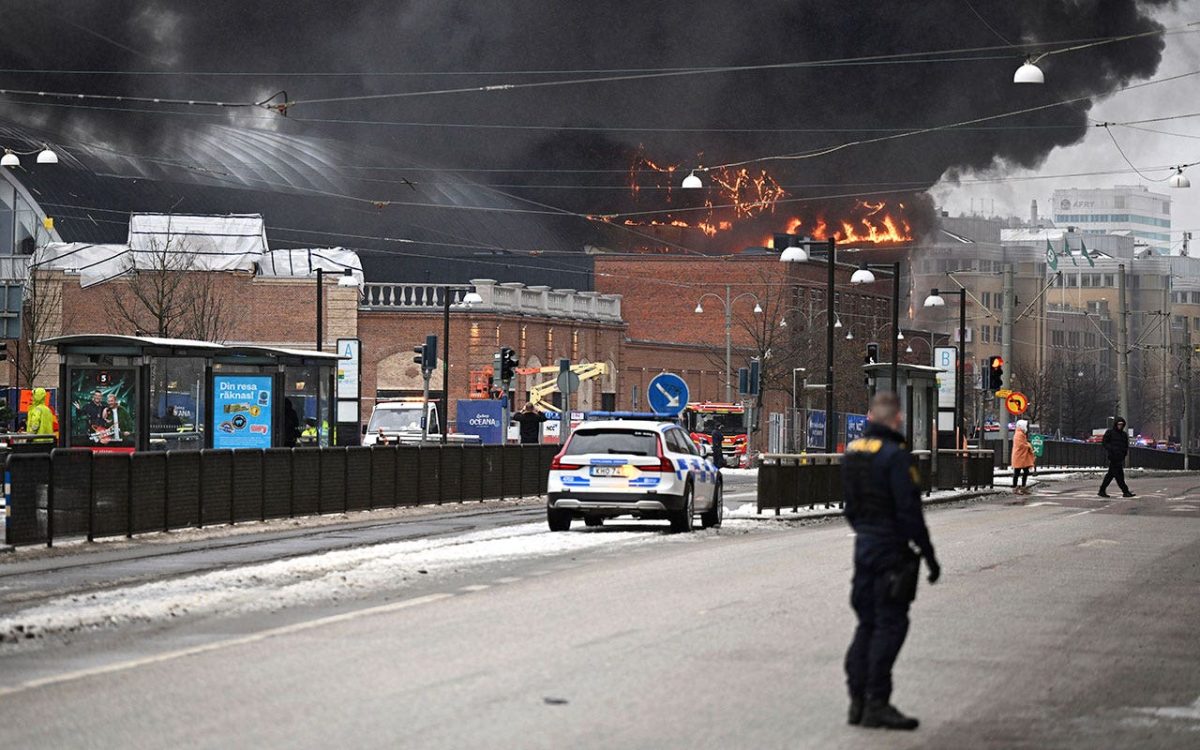 Smoke is seen after a fire broke out at Oceana, the new water park at Liseberg Theme Park in Gothenburg, Sweden, on February 12, 2024. The fire spread throughout the water park, and police and fire officials could not immediately say whether the fire started. There were no casualties. (Björn Larsson Rosvall/TT News Agency, via AP)