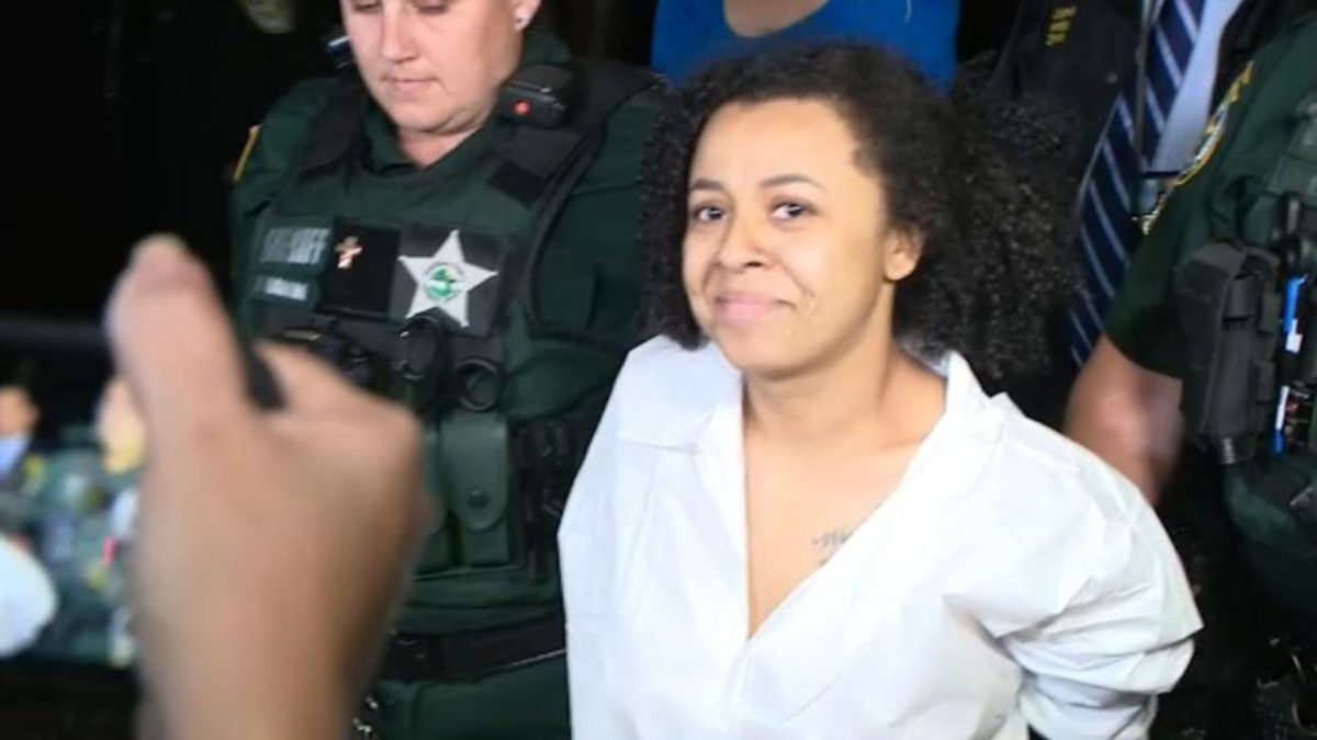 Osceola County Sheriff Marcos Lopez said 33-year-old Kelsey Glover was arrested for aggravated assault with a deadly weapon and gun after police officers found her chasing a witness inside her Poinciana home with a hammer. He was arrested earlier in the day on suspicion of