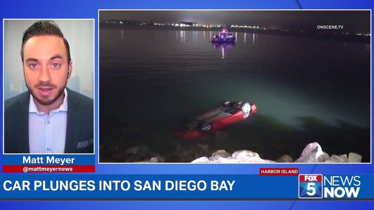 A man dives in to help after a car plunges into the bay overnight, but the only signs rescuers find are two sets of wet footprints.